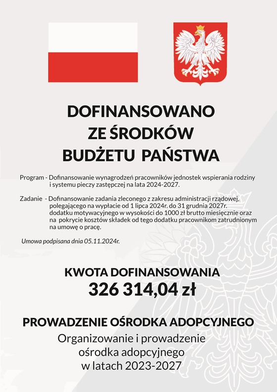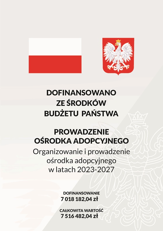 Zadanie realizowane przez Ośrodek Adopcyjny TPD w Krakowie jest dofinansowane ze środków finansowych budżetu państwa będących w dyspozycji Województwa Małopolskiego.